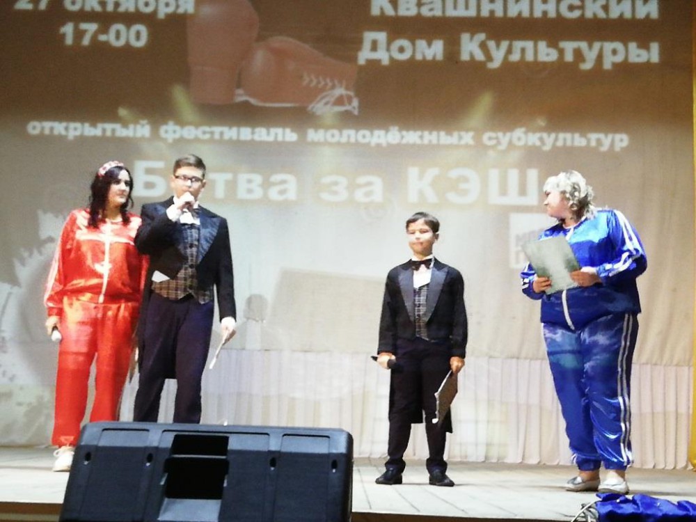 Для кого-то непонятное, для кого-то даже пугающее слово "КЭШ" привело в зрительный зал Квашнинского дома культуры более 170, желающих увидеть творческих представителей молодого поколения. В фестивале молодёжных субкультур "Битва за КЭШ" приняли участие 19 желающих проявить себя в РЭП (музыкальный речитатив), ПОП (популярный вокал), Dance (современная "уличная" хореография) и Фото (фотоконкурс "Дорогами добра") номинациях. Нас, как организаторов (МКУ "Северный ЦИКДиСД", МГЕР г.Камышлов) очень порадовал тот факт, что в фестивале приняли участие молодые люди не только МО "Галкинское сельское поселение", но и МО "Восточное сельское поселение", и Ирбитское МО. Фестиваль проходил при поддержке депутата Государственной Думы - Максима Анатольевича Иванова.