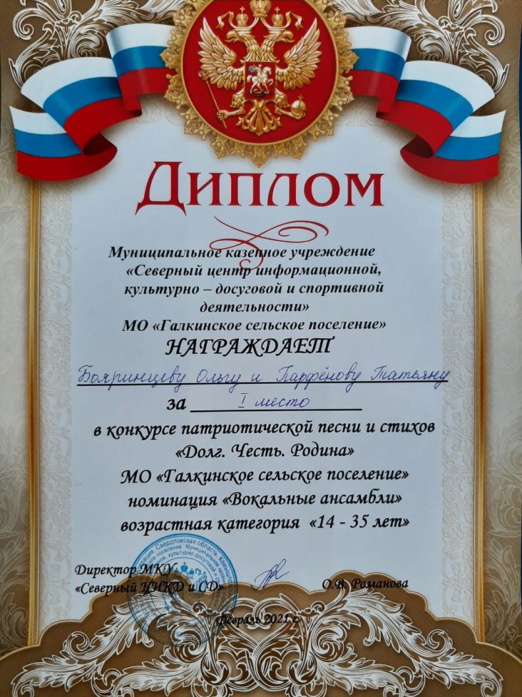 I место - Дуэт Парфенова Татьяна и Бояринцева Ольга