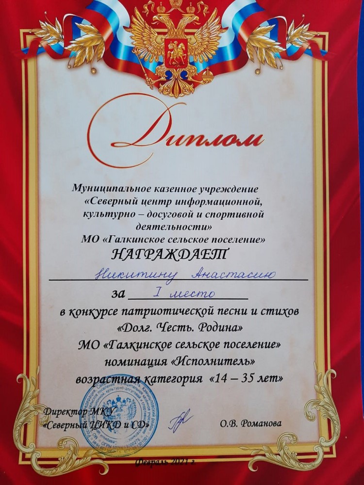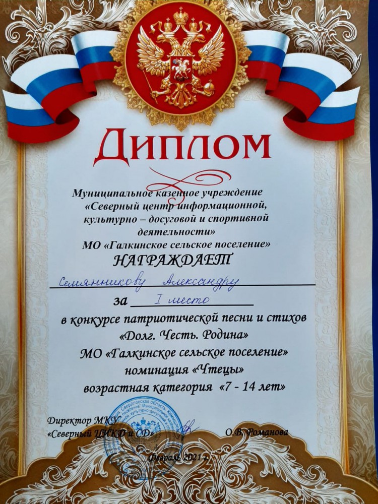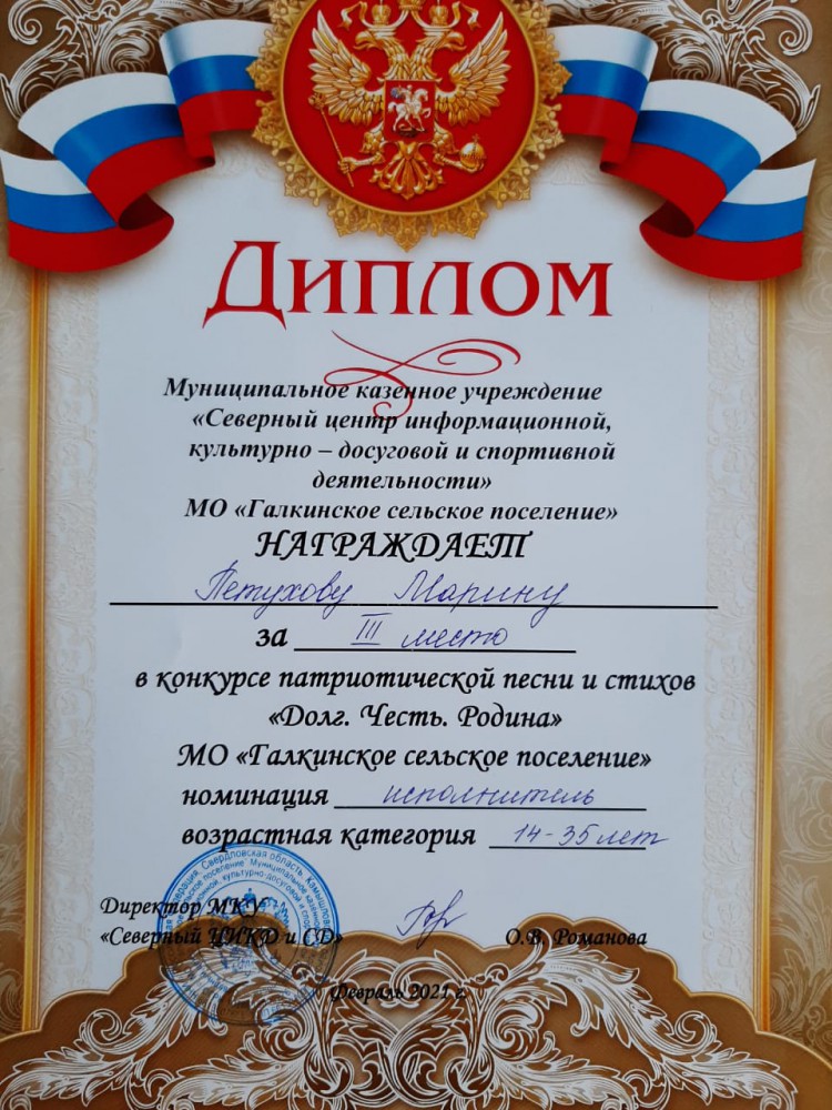 III место - Дуэт Попова Александра и Уфимцева Наталья