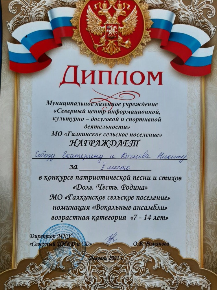II место - Дуэт Собода Екатерина и Кочнев Никита